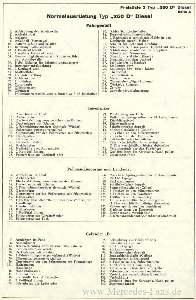 Der Mercedes-Benz 260 D der Baureihe W 138 ist der erste serienmäßige Diesel-Personenwagen der Welt. Im Februar 1936 und damit 50 Jahre nach der Erfindung des Automobils mit Ottomotor durch Carl Benz stellt Mercedes-Benz dieses revolutionäre Fahrzeug auf der Internationalen Motorrad- und Automobilausstellung in Berlin vor. Sein 2,6-Liter-Vierzylindermotor OM 138 mit Mercedes-Benz Vorkammersystem und Bosch-Einspritzpumpe leistet 33 kW (45 PS) bei 3200/min und ist in das Fahrgestell des Ottomotor-Typs Mercedes-Benz 200 mit langem Radstand eingebaut. Die Vier-Stempel-Einspritzpumpe von Bosch erlaubt hohe Drehzahlen bis 3000/min und sichert eine schnelle Kraftstoffversorgung.