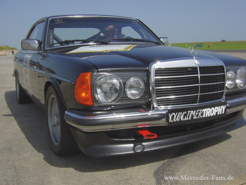 Zwei Mercedes-Benz W123 Coupés im Einsatz beim Slalom am 18.08.2012 auf dem Flugplatz Biburg