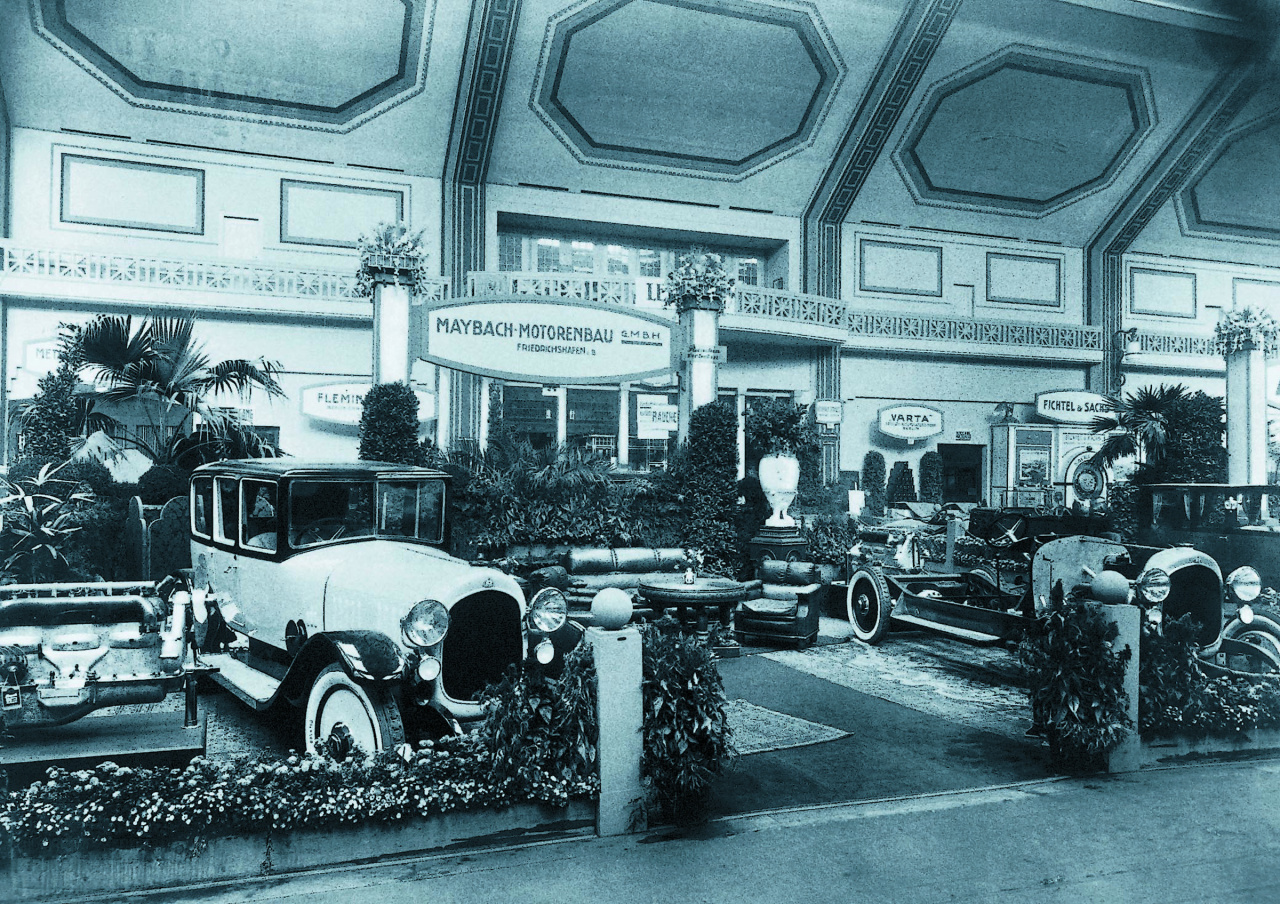 Die Herrenfahrer-Limousine Typ 22/70 PS W 3 auf dem Stand der Maybach-Motorenbau GmbH in Berlin, September 1921.