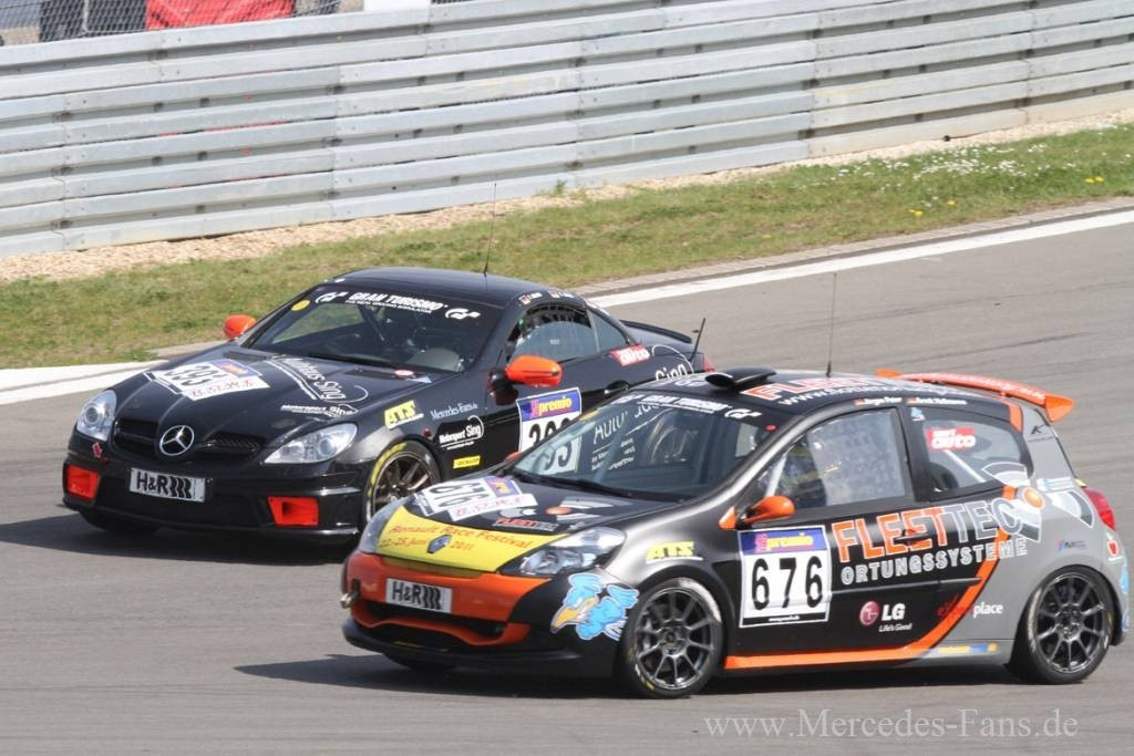 Manche empfinden den vierten Platz als undankbar. Nicht so die Mannschaft von Motorsport Sing aus Heidenheim. Denn im 2. Lauf der VLN ging es für den Mercedes SLK von Sing Motorsport mächtig aufwärts. Der vierte Platz war für die Heidenheimer ein erfreuliches Ergebnis. Und weil man gegen Ende des Rennens auch noch mit Getriebeproblemen zu kämpfe hatte, war man mit dem Ausgang des Rennens hochzufrieden.