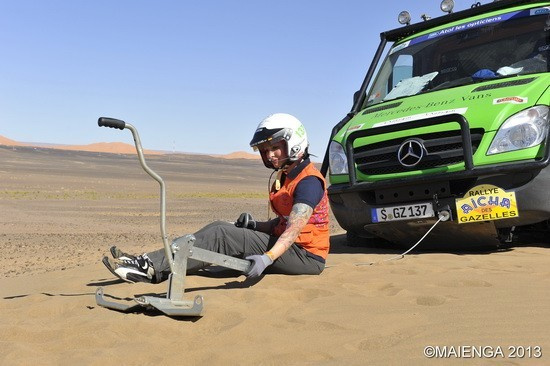 Die 1. Etappe der 23. Rallye Aicha des Gazelles ist gelaufen. Und das aus Sicht der Mercedes-Benz-Gazellen gar nicht mal schlecht. Die vier Teams haben ihre Sache bisher gut gemacht, allerdings mußte das Team Trillmann/Ebermann die Nacht in der Wüste verbringen und ist erst am Morgen ins Biwak heimgekehrt. "Ohne Navis, Handys und nur mit Kompass und einer 1:100.000 Karte weißt du nachts in der pechschwarzen Wüste nicht, wo du bist!", verriet uns "Teamchef" Thomas Konzelmann, der die vier grünen Mercedes-Vans mit seinem team für die Rallye Aicha des Gazelles fitgemacht hat!