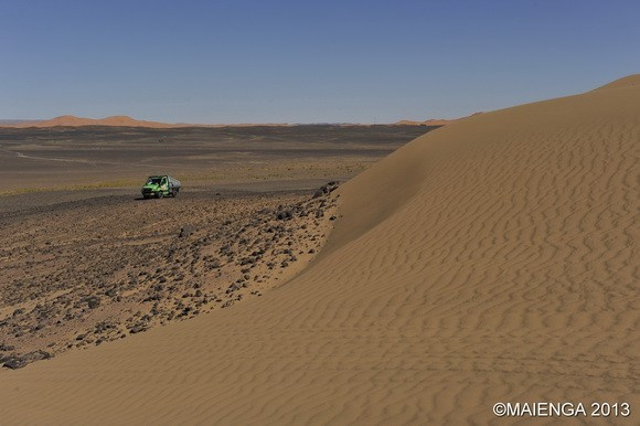 Die 1. Etappe der 23. Rallye Aicha des Gazelles ist gelaufen. Und das aus Sicht der Mercedes-Benz-Gazellen gar nicht mal schlecht. Die vier Teams haben ihre Sache bisher gut gemacht, allerdings mußte das Team Trillmann/Ebermann die Nacht in der Wüste verbringen und ist erst am Morgen ins Biwak heimgekehrt. "Ohne Navis, Handys und nur mit Kompass und einer 1:100.000 Karte weißt du nachts in der pechschwarzen Wüste nicht, wo du bist!", verriet uns "Teamchef" Thomas Konzelmann, der die vier grünen Mercedes-Vans mit seinem team für die Rallye Aicha des Gazelles fitgemacht hat!