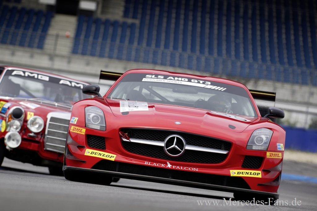 Am 30. Juli 2011 geht das Kundenteam Black Falcon beim 24-Stunden-Rennen von Spa-Francorchamps (Belgien) mit dem Mercedes-Benz SLS AMG GT3 an den Start. Der Flügeltürer mit der Startnummer 35 ist optisch im gleichen Look gehalten, wie der Mercedes-Benz 300 SEL 6.8 AMG, mit dem Hans Heyer und Clemens Schickentanz vor 40 Jahren der Klassensieg und zweite Gesamtplatz gelang. Pilotiert wird der SLS AMG GT3 unter anderem von Kenneth Heyer, dem Sohn von Hans Heyer. Beim belgischen Langstrecken-Klassiker werden insgesamt sieben Flügeltürer antreten.