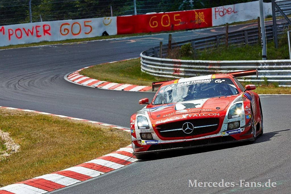 175 Autos traten in der Eifel zum 24 Stunden Rennen an, entschieden wurde der Langstreckenklassiker dann aber zwischen zwei direkten Nachbarn aus Meuspath, einem Dorf in Rufweite zur Döttinger Höhe. Christopher Haase / Christian Mamerow / Rene Rast / Markus Winkelhock im Audi R8 LMS ultra (#4) des Phoenix Racing Teams gewannen vor dem Mercedes-Benz SLS AMG GT3 (#1) des Vorjahressiegers Black Falcon, pilotiert von Jeroen Bleekemolen / Andreas Simonsen / Christian Menzel / Lance David Arnold.