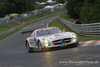 Die Nürburgring-Klischees sind bekannt, aber sie passen einfach! Nirgendwo sind Rennausgang und Wetter unkalkulierbarer als hier, nirgendwo ein Sieg härter aber vielleicht auch glücklicher. Was die Leistung des siegreichen Manthey-Porsche nicht schmälern soll, ganz im Gegenteil. Das Team konnte in den letzten sechs Jahren fünfmal am Ring gewinnen. Der SLS AMG-Armada, angetreten mit guten Chancen auf den Sieg, blieb letztlich nur ein Achtungsergebnis. Zwei der acht gestarteten Flügeltürer kamen unter die ersten Zehn! Und doch, stand am Schluß ein Mercedes-Team auf dem Treppchen ganz oben!