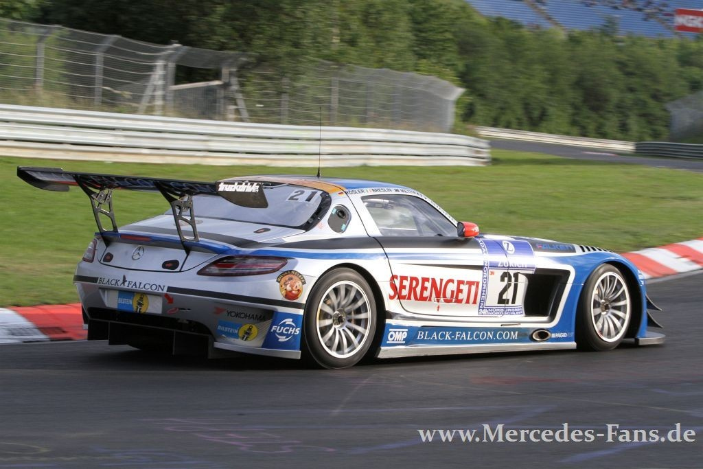 Die Nürburgring-Klischees sind bekannt, aber sie passen einfach! Nirgendwo sind Rennausgang und Wetter unkalkulierbarer als hier, nirgendwo ein Sieg härter aber vielleicht auch glücklicher. Was die Leistung des siegreichen Manthey-Porsche nicht schmälern soll, ganz im Gegenteil. Das Team konnte in den letzten sechs Jahren fünfmal am Ring gewinnen. Der SLS AMG-Armada, angetreten mit guten Chancen auf den Sieg, blieb letztlich nur ein Achtungsergebnis. Zwei der acht gestarteten Flügeltürer kamen unter die ersten Zehn! Und doch, stand am Schluß ein Mercedes-Team auf dem Treppchen ganz oben!