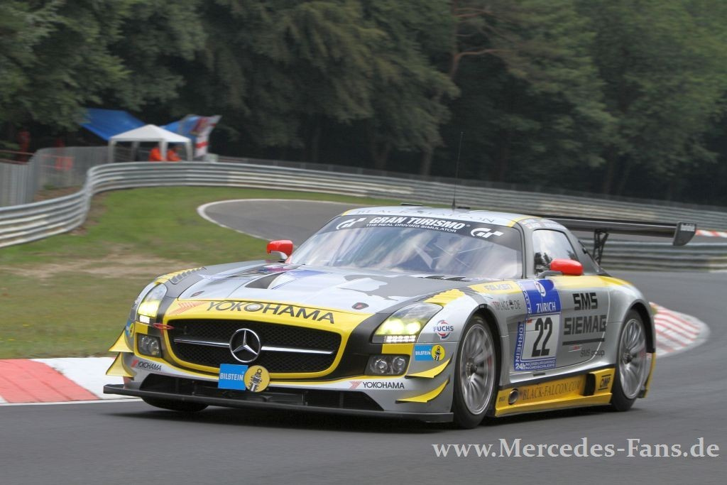 Die Nürburgring-Klischees sind bekannt, aber sie passen einfach! Nirgendwo sind Rennausgang und Wetter unkalkulierbarer als hier, nirgendwo ein Sieg härter aber vielleicht auch glücklicher. Was die Leistung des siegreichen Manthey-Porsche nicht schmälern soll, ganz im Gegenteil. Das Team konnte in den letzten sechs Jahren fünfmal am Ring gewinnen. Der SLS AMG-Armada, angetreten mit guten Chancen auf den Sieg, blieb letztlich nur ein Achtungsergebnis. Zwei der acht gestarteten Flügeltürer kamen unter die ersten Zehn! Und doch, stand am Schluß ein Mercedes-Team auf dem Treppchen ganz oben!