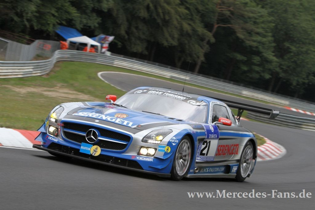 Die Nürburgring-Klischees sind bekannt, aber sie passen einfach! Nirgendwo sind Rennausgang und Wetter unkalkulierbarer als hier, nirgendwo ein Sieg härter aber vielleicht auch glücklicher. Was die Leistung des siegreichen Manthey-Porsche nicht schmälern soll, ganz im Gegenteil. Das Team konnte in den letzten sechs Jahren fünfmal am Ring gewinnen. Der SLS AMG-Armada, angetreten mit guten Chancen auf den Sieg, blieb letztlich nur ein Achtungsergebnis. Zwei der acht gestarteten Flügeltürer kamen unter die ersten Zehn! Und doch, stand am Schluß ein Mercedes-Team auf dem Treppchen ganz oben!
