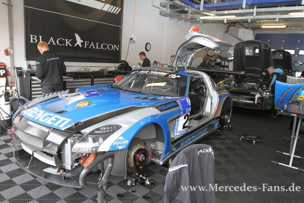Die Nürburgring-Klischees sind bekannt, aber sie passen einfach! Nirgendwo sind Rennausgang und Wetter unkalkulierbarer als hier, nirgendwo ein Sieg härter aber vielleicht auch glücklicher. Was die Leistung des siegreichen Manthey-Porsche nicht schmälern soll, ganz im Gegenteil. Das Team konnte in den letzten sechs Jahren fünfmal am Ring gewinnen. Der SLS AMG-Armada, angetreten mit guten Chancen auf den Sieg, blieb letztlich nur ein Achtungsergebnis. Zwei der acht gestarteten Flügeltürer kamen unter die ersten Zehn! Und doch, stand am Schluß ein Mercedes-Team auf dem Treppchen ganz oben!