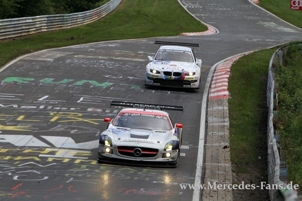 Die Nürburgring-Klischees sind bekannt, aber sie passen einfach! Nirgendwo sind Rennausgang und Wetter unkalkulierbarer als hier, nirgendwo ein Sieg härter aber vielleicht auch glücklicher. Was die Leistung des siegreichen Manthey-Porsche nicht schmälern soll, ganz im Gegenteil. Das Team konnte in den letzten sechs Jahren fünfmal am Ring gewinnen. Der SLS AMG-Armada, angetreten mit guten Chancen auf den Sieg, blieb letztlich nur ein Achtungsergebnis. Zwei der acht gestarteten Flügeltürer kamen unter die ersten Zehn! Und doch, stand am Schluß ein Mercedes-Team auf dem Treppchen ganz oben!