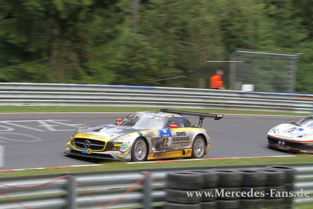 Die Nürburgring-Klischees sind bekannt, aber sie passen einfach! Nirgendwo sind Rennausgang und Wetter unkalkulierbarer als hier, nirgendwo ein Sieg härter aber vielleicht auch glücklicher. Was die Leistung des siegreichen Manthey-Porsche nicht schmälern soll, ganz im Gegenteil. Das Team konnte in den letzten sechs Jahren fünfmal am Ring gewinnen. Der SLS AMG-Armada, angetreten mit guten Chancen auf den Sieg, blieb letztlich nur ein Achtungsergebnis. Zwei der acht gestarteten Flügeltürer kamen unter die ersten Zehn! Und doch, stand am Schluß ein Mercedes-Team auf dem Treppchen ganz oben!