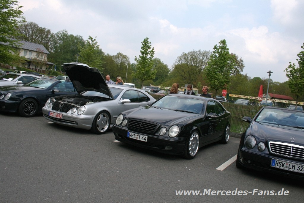 Haltern am See hat CLK gewählt! Am Tag der NRW-Landtagswahl stand bereits bei den ersten Hochrechnungen fest – die Wahl ist für den Mercedes-Zweitürer erfolgreich ausgegangen! Sage und schreibe 58 Coupés und Cabriolets der Baureihen W208 und W209 haben sich auf dem großen Parkplatz am idyllisch im Wald und an der Mündung des Flüsschens Stever gelegenen „Lakeside Inn“ getroffen. Die absolute Mehrheit hatten dabei die CLK der ersten Baureihe, kein Wunder waren die 209er zum ersten Mal dabei, schafften aber auf Anhieb die Fünf-Prozent-Hürde! Die vielen verschiedenen Kennzeichen verrieten, dass die Fahrer und Fahrerinnen zum Teil eine längere Anreise hatten. Ab Nachmittags hatte sich ein Teil der Gemeinde dann ins Innere des atmosphärischen Restaurants verlagert, um die kulinarischen Genüsse der amerikanisch-inspirierten Küche zu kosten. Ein anderer Teil kam dem Pflichtbesuch am Muttertag nach. Alles in Allem kann das 5. CLK Treffen in Haltern am See als Erfolg gewertet werden, wann sieht man schließlich mal 58 CLKs auf einem Parkplatz…