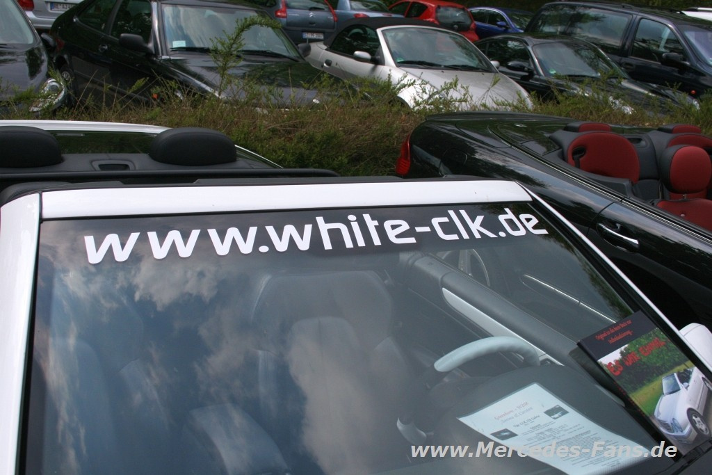 Haltern am See hat CLK gewählt! Am Tag der NRW-Landtagswahl stand bereits bei den ersten Hochrechnungen fest – die Wahl ist für den Mercedes-Zweitürer erfolgreich ausgegangen! Sage und schreibe 58 Coupés und Cabriolets der Baureihen W208 und W209 haben sich auf dem großen Parkplatz am idyllisch im Wald und an der Mündung des Flüsschens Stever gelegenen „Lakeside Inn“ getroffen. Die absolute Mehrheit hatten dabei die CLK der ersten Baureihe, kein Wunder waren die 209er zum ersten Mal dabei, schafften aber auf Anhieb die Fünf-Prozent-Hürde! Die vielen verschiedenen Kennzeichen verrieten, dass die Fahrer und Fahrerinnen zum Teil eine längere Anreise hatten. Ab Nachmittags hatte sich ein Teil der Gemeinde dann ins Innere des atmosphärischen Restaurants verlagert, um die kulinarischen Genüsse der amerikanisch-inspirierten Küche zu kosten. Ein anderer Teil kam dem Pflichtbesuch am Muttertag nach. Alles in Allem kann das 5. CLK Treffen in Haltern am See als Erfolg gewertet werden, wann sieht man schließlich mal 58 CLKs auf einem Parkplatz…