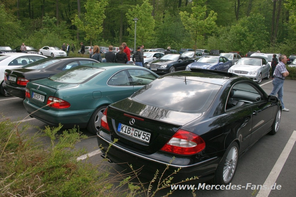 Haltern am See hat CLK gewählt! Am Tag der NRW-Landtagswahl stand bereits bei den ersten Hochrechnungen fest – die Wahl ist für den Mercedes-Zweitürer erfolgreich ausgegangen! Sage und schreibe 58 Coupés und Cabriolets der Baureihen W208 und W209 haben sich auf dem großen Parkplatz am idyllisch im Wald und an der Mündung des Flüsschens Stever gelegenen „Lakeside Inn“ getroffen. Die absolute Mehrheit hatten dabei die CLK der ersten Baureihe, kein Wunder waren die 209er zum ersten Mal dabei, schafften aber auf Anhieb die Fünf-Prozent-Hürde! Die vielen verschiedenen Kennzeichen verrieten, dass die Fahrer und Fahrerinnen zum Teil eine längere Anreise hatten. Ab Nachmittags hatte sich ein Teil der Gemeinde dann ins Innere des atmosphärischen Restaurants verlagert, um die kulinarischen Genüsse der amerikanisch-inspirierten Küche zu kosten. Ein anderer Teil kam dem Pflichtbesuch am Muttertag nach. Alles in Allem kann das 5. CLK Treffen in Haltern am See als Erfolg gewertet werden, wann sieht man schließlich mal 58 CLKs auf einem Parkplatz…