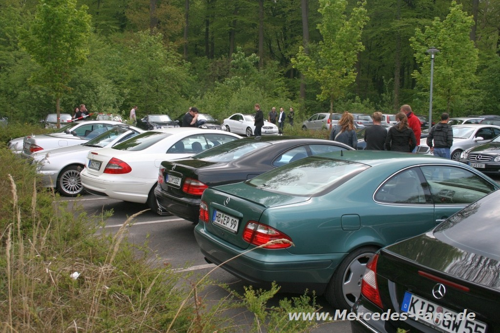Haltern am See hat CLK gewählt! Am Tag der NRW-Landtagswahl stand bereits bei den ersten Hochrechnungen fest – die Wahl ist für den Mercedes-Zweitürer erfolgreich ausgegangen! Sage und schreibe 58 Coupés und Cabriolets der Baureihen W208 und W209 haben sich auf dem großen Parkplatz am idyllisch im Wald und an der Mündung des Flüsschens Stever gelegenen „Lakeside Inn“ getroffen. Die absolute Mehrheit hatten dabei die CLK der ersten Baureihe, kein Wunder waren die 209er zum ersten Mal dabei, schafften aber auf Anhieb die Fünf-Prozent-Hürde! Die vielen verschiedenen Kennzeichen verrieten, dass die Fahrer und Fahrerinnen zum Teil eine längere Anreise hatten. Ab Nachmittags hatte sich ein Teil der Gemeinde dann ins Innere des atmosphärischen Restaurants verlagert, um die kulinarischen Genüsse der amerikanisch-inspirierten Küche zu kosten. Ein anderer Teil kam dem Pflichtbesuch am Muttertag nach. Alles in Allem kann das 5. CLK Treffen in Haltern am See als Erfolg gewertet werden, wann sieht man schließlich mal 58 CLKs auf einem Parkplatz…