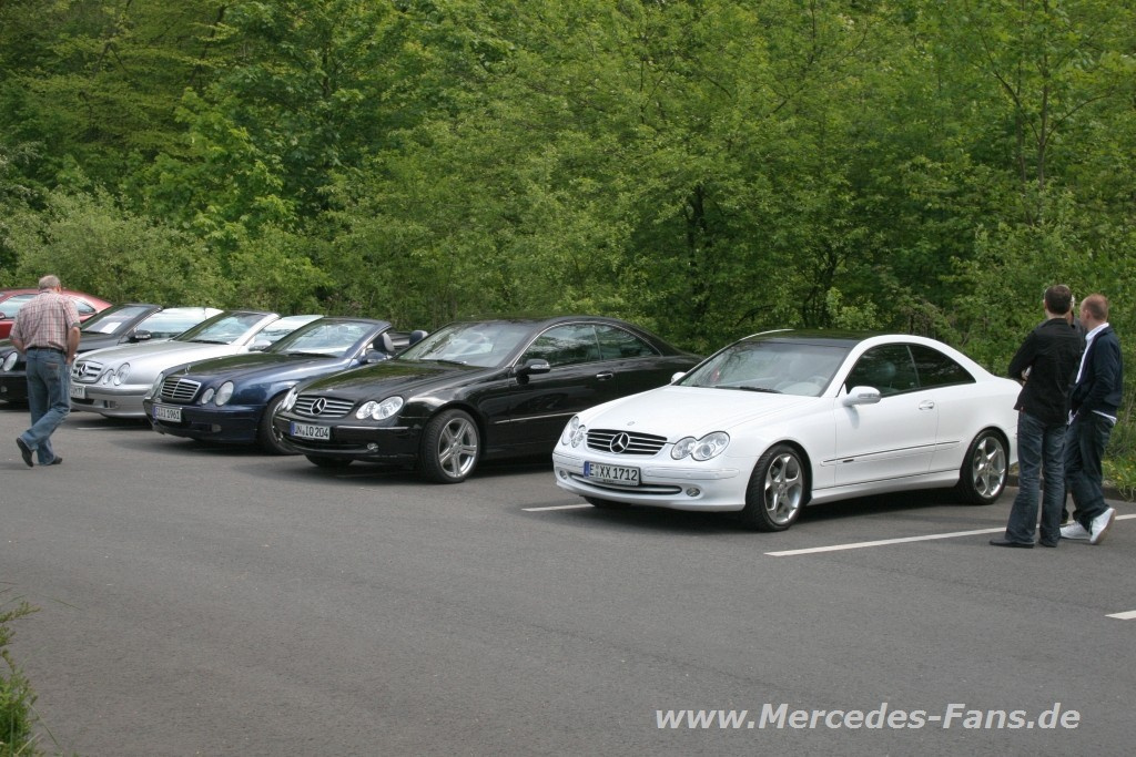 Haltern am See hat CLK gewählt! Am Tag der NRW-Landtagswahl stand bereits bei den ersten Hochrechnungen fest – die Wahl ist für den Mercedes-Zweitürer erfolgreich ausgegangen! Sage und schreibe 58 Coupés und Cabriolets der Baureihen W208 und W209 haben sich auf dem großen Parkplatz am idyllisch im Wald und an der Mündung des Flüsschens Stever gelegenen „Lakeside Inn“ getroffen. Die absolute Mehrheit hatten dabei die CLK der ersten Baureihe, kein Wunder waren die 209er zum ersten Mal dabei, schafften aber auf Anhieb die Fünf-Prozent-Hürde! Die vielen verschiedenen Kennzeichen verrieten, dass die Fahrer und Fahrerinnen zum Teil eine längere Anreise hatten. Ab Nachmittags hatte sich ein Teil der Gemeinde dann ins Innere des atmosphärischen Restaurants verlagert, um die kulinarischen Genüsse der amerikanisch-inspirierten Küche zu kosten. Ein anderer Teil kam dem Pflichtbesuch am Muttertag nach. Alles in Allem kann das 5. CLK Treffen in Haltern am See als Erfolg gewertet werden, wann sieht man schließlich mal 58 CLKs auf einem Parkplatz…