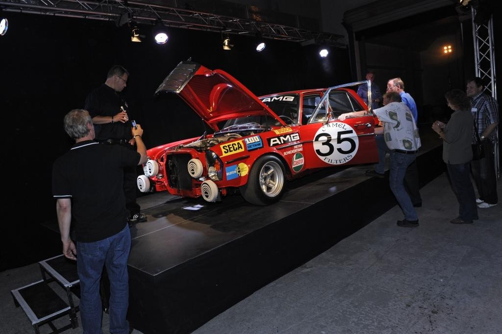 Wenn es nachts ein Feuerwerk gibt, wenn "die rote Sau" aus Affalterbach und auf einer Bühne mit Licht- und Nebeleffekten präsentiert wird, und wenn ein Safety-Car und ein SLS AMG in einer Halle um Aufmerksamkeit wetteifern, und wenn 100 AMG-Begeisterte gemeinsam feiern und Spaß haben, dann kann es sich nur um eine Veranstaltung der "AMG-Freunde" handeln. Aber immer schön der Reihe nach: