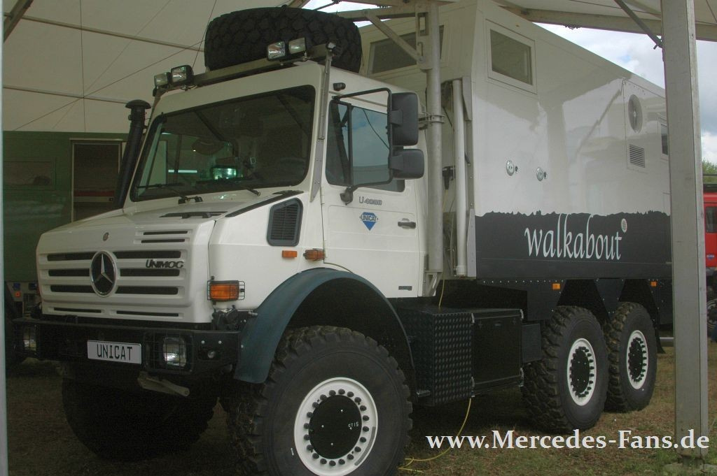 G-Modelle waren in allen Variationen zu finden, vom Station Wagen, über Cabrio bis hin zum Pickup. Auch viele fertig ausgebaute Fernreisefahrzeuge waren darunter. Mit Iglhaut (Sprinter und Vito 4x4)und Oberaigner (Sprinter 6x6) war auch die Fraktion der Geländetauglischen Mercedes Transporter stark vertreten. Jörg Sand hat sich mal umgeschaut!