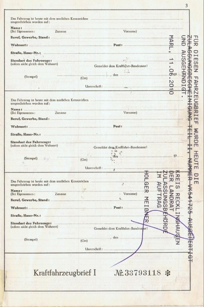 Seit fast 45 Jahren im Alltagseinsatz und das im Erstbesitz! So etwas gibt es nicht etwa nur im sonnigen Kalifornien, sondern mitten im Ruhrgebiet - in Castrop-Rauxel. Ausgeliefert zu einer Zeit, als hier noch kein blauer Himmel herrschte, sondern Kohle und Stahl das Landschaftsbild prägten. Doch der Reihe nach… Es geht um eine 200 D Heckflosse, bestellt am 01.07.1965, ausgeliefert Anfang 1967 - so war das eben damals mit den Lieferzeiten!- von der Mercedes-Benz Niederlassung Dortmund und noch am Erstzulassungstag auf den heutigen Besitzer übergegangen.
