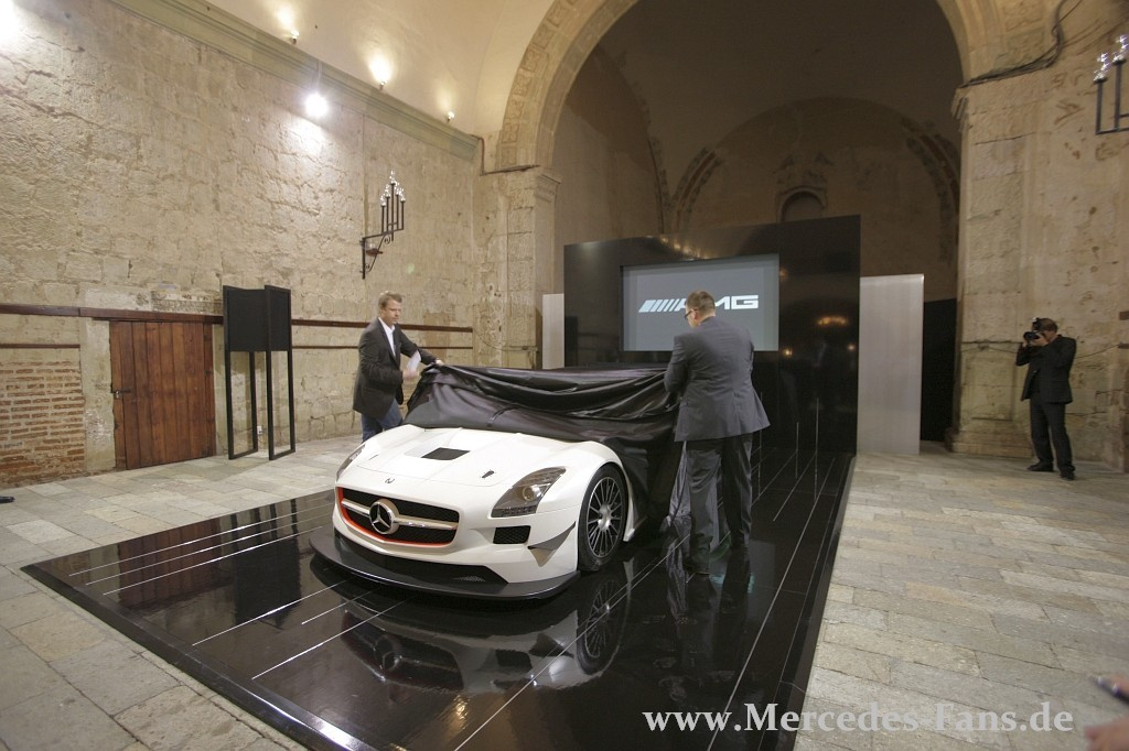 Der Siegerwagen Mercedes-Benz 300 SL aus dem Jahr 1952 und ein aktueller Mercedes-Benz SLS AMG erinnern an einen Mercedes Triumph in Mexico.