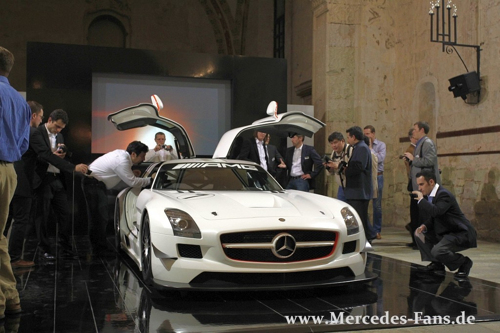Der Siegerwagen Mercedes-Benz 300 SL aus dem Jahr 1952 und ein aktueller Mercedes-Benz SLS AMG erinnern an einen Mercedes Triumph in Mexico.