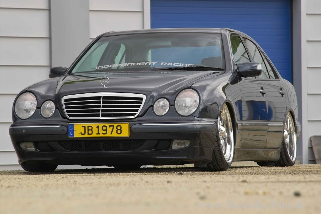 Schöne Sterne stehen nicht nur am Himmel, sondern sind auch auf Erden anzutreffen. Das weiß jeder Fahrer eines Mercedes zu erzählen. Mit Ausnahme von E-Klasse Pilot Jerome Badelle lobpreisen die meisten auch die überirdischen Qualitäten ihres automobilen Weggefährten. Der Luxemburger findet nämlich, dass sein E270 aus der W210 Baureihe die beste Figur macht, wenn die Bodenfreiheit seiner Mercedes-Limousine dem Erdboden gleichgemacht wurde – sprich per Luftfahrwerk ganz flach auf dem Asphalt liegt.