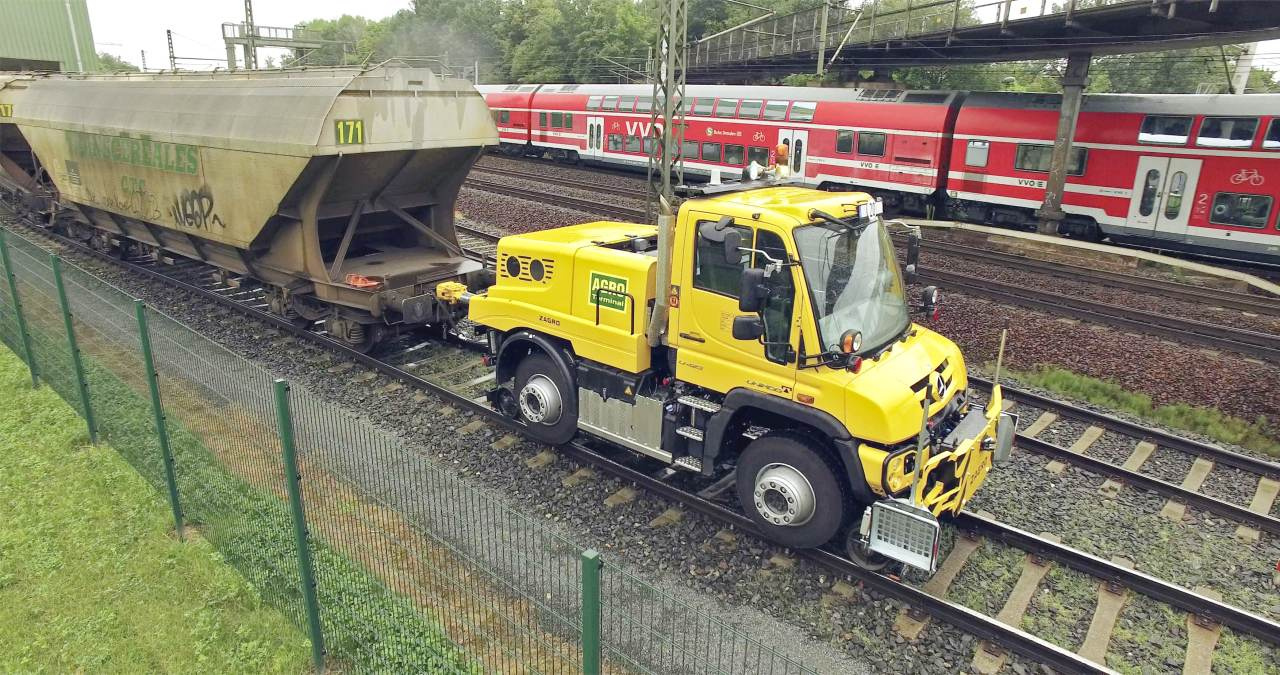 Der Unimog präsentiert sich auf der Innotrans 2016 als Alleskönner auf dem Gleis