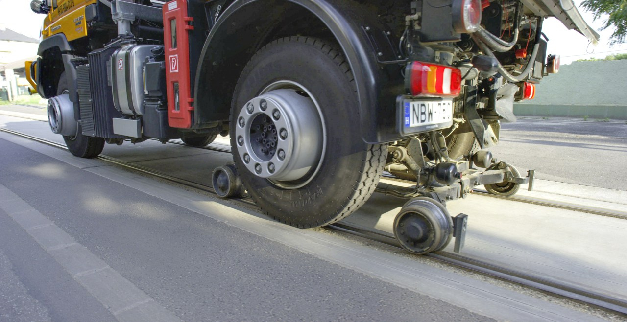 Der Unimog präsentiert sich auf der Innotrans 2016 als Alleskönner auf dem Gleis