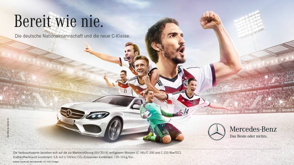 Fußballfans in aller Herren Länder spüren schon das Kribbeln in den Gliedern. Die Vorfreude ist groß auf die Fußball WM 2014 in Brasilien. Einen Monat vor Beginn der Fußball Weltmeisterschaft präsentieren Mercedes-Benz und der DFB ihren gemeinsamen Spot zur WM-Kampagne Bereit wie nie. In dem aufwändig inszenierten Film komtm aber nicht nur der Ball, sondern auch die neue C-Klasse von Mercedes-Benz (W205) ins Rollen. Sehen Sie selbst: