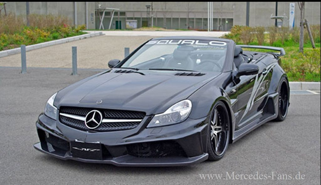 SQUALO nennt der japanische Mercedes-Tuner VITT PERFOMANCE seinen Mercedes Benz SL R230 Trimm. Man sieht sofort: Hier hat man dick aufgetragen. Was heißt bedeutet überhaupt der Begriff SQUALO? Mehrere Deutungen sind möglich: So gibt es z.B. eine Hai Art dieses Namens. In Italien wird ein Knallkörper so genannt. Was wollte der Namensgeber mit seiner Wahl also sagen? Dass dieser Benz Biss und Bums besitzt?