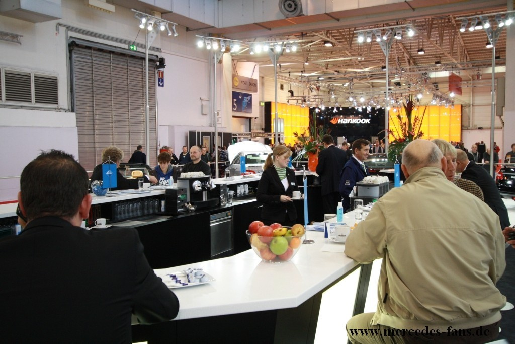 Auch der hochklassige Fahrzeugveredler Brabus lässt sich auf der Essen Motor Show sehen und vermittelt dabei mit seinem Stand den gewohnten Hauch Exklusivität, den die Marke von der Menge abheben soll. Mit einer aus gebürstetem Edelstahl weist der Luxusveredler die Besucher der Messe in ihre Schranken, der Zugang ist so exklusiv wie der Kundenstamm der Bottroper: Nur Kunden, VIP und natürlich für Mercedes-Fans.de und andere Journalisten haben Zugang zum „inneren Zirkel“ des Messestandes.