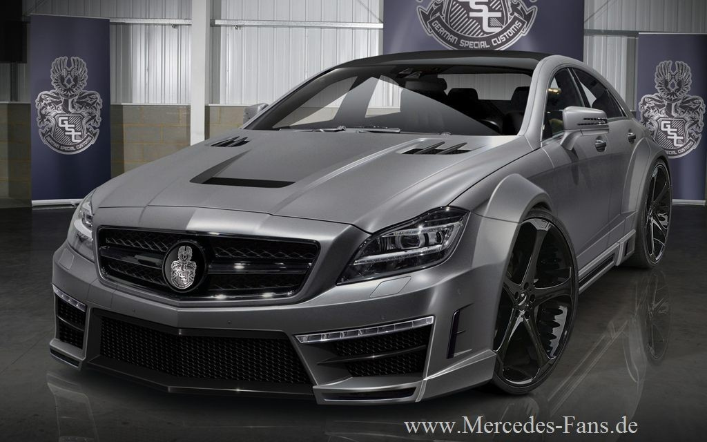 Codename "Stealth": Der deutsche Tuner GSC (German Special Customs) hat für den Mercedes CLS 63 AMG ein fulminantes Performance-Kit entwickelt. "Stealth" nennt sich Breitbau-Kit, welches das viertürige Mercedes AMG Coupé mächtig dastehen lässt. Zum wuchtigen GSC-Widebody-Kit gehören eine Frontstoßstange mit Carbon, Heckstoßstange mit Carbon, Seitenschweller, Kotflügelverbreiterungen, Carbon Kühlergrill, Doppelauspuff, Spoilerlippe und eine Carbon Motorhaube.":