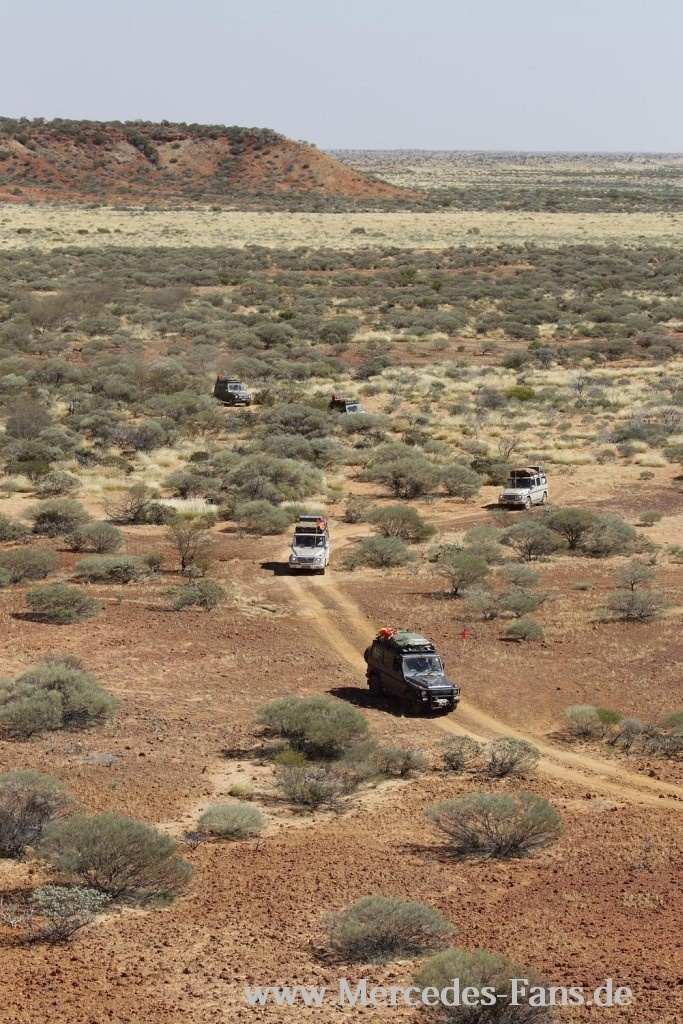 Jörg Sand berichtet von seinem Trip durchs australische Outback mit sieben Mercedes G Modellen.