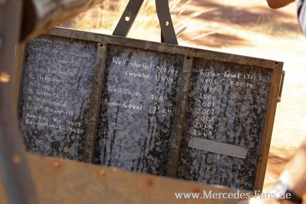 Anlässlich der Einführung des G auf dem australischen Markt und der Auferstehung des G als Rechtslenker war die Idee für die außergewöhnliche PR-Tour bei Daimler entstanden. Das war eine Chance, die ich mir nicht entgehen lassen konnte. Die Canning Stock Route ist in Australien so berühmt-berüchtigt wie in Deutschland der Nürburgring. Die 2.000 km lange Automarter ist eine Aneinanderreihung aus extrem schlechten Wellblechpisten, Felsen, Dünen und Salzseen. Sie folgt einer Viehtriebsroute aus dem 19. Jahrhundert, alle 30-80 km gibt es einen Brunnen (Well), dort sind die Rastplätze für die Traveller. Auf der Hälfte der Strecke liegt Well 33, die einzige Siedlung auf den endlosen 2.000 km roten Staubs.