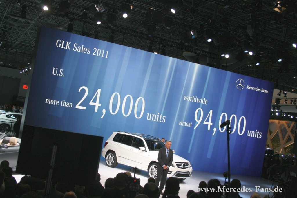 Mit einem neuen Rekord-Absatz von 61.000 Einheiten hat Mercedes-Benz das erste Quartal 2012 in den USA abgeschlossen. Im Anschluss an das bisher erfolgreichste Jahr seiner Unternehmensgeschichte bleibt der Erfinder des Automobils damit weiter auf Erfolgskurs. Für zusätzliche Impulse, gerade auch auf dem starken US-Markt, sorgen drei attraktive Newcomer. Im Rahmen der heutigen Mercedes-Benz Pressekonferenz auf der New York International Auto Show 2012 feierten die neue Generation des GLK, das komplett neue Fullsize-SUV der GL-Klasse sowie der top-exklusive SL 65 AMG, der luxuriöse V12-Highperformance-Roadster von Mercedes-AMG, ihre Weltpremiere.