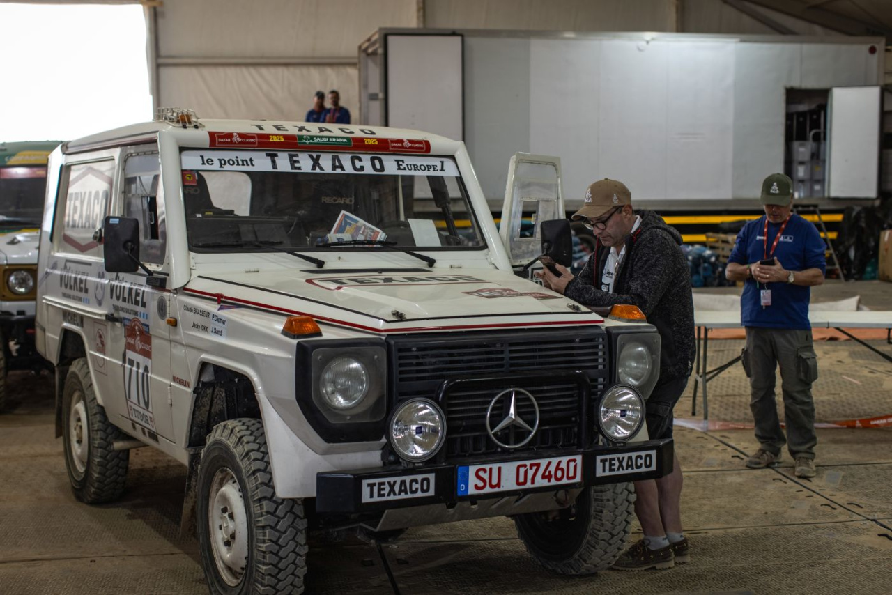 Es ist die härteste Rallye der Welt! Vom 3. Januar an führt die Dakar Rally zwei Wochen über 7500 zu fahrende Gesamtkilometer durch die Wüste Saudi Arabiens. Mit 3 Autos dabei das Völkel Dakar Team, das nach dem großen Erfolg 2024  auch in diesem Jahr wieder in der Kategorie Classic antritt. Die G-Klasse, ein 280 GE, dessen Look und Technik sich am verschollenen G-Modell des Dakar-Siegers 1983 Jackie Ickx und zwei Mercedes-Benz NG 2636 6x6, die als original Service-Trucks des Mitsubishi  Sonauto-Teams bereits ein bewegtes Rallye-Leben hinter sich haben.