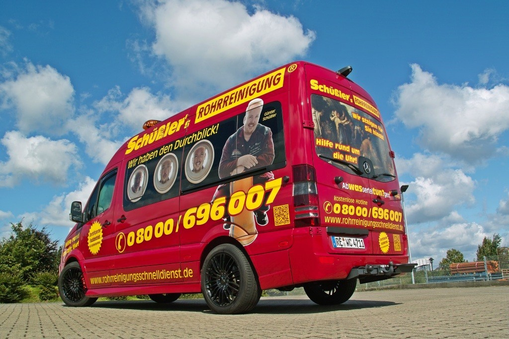 Wenn das Meister Röhrig noch erlebt hätte: Das sportlich aufgemachte und mit Lalü-Leiste ausgestattete Rohreinigungsservice-Fahrzeug sieht so scharf “frisiert” aus, als wäre es einem Werner-Comic entsprungen. Doch der rassig rote Mercedes Sprinter ist keine Fiktion. Es gibt ihn wirklich. Realisiert wurde...,