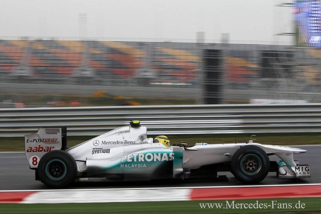 Vom 16. Formel 1 Lauf in Südkorea hat man sich im Mercedes GP Petronas F1 Team nach den guten Qualifying-Leistungen von Altmeister Schumacher wohl mehr erhofft. Doch diese Hoffnungen zerplatzten in der 16. Runde, als Petrow den Rekordweltmeister von der Piste rammte und Schumis Silberfeil zum unfreiwilligen Ausstiegskandidaten machte. Am Ende gewann Sebastian Vettel das Rennen und holte mit seinem Sieg für Red Bull auch die Konstrukteurs-Weltmeisterschaft. Doch auch für Mercedes gab's ein doppeltes Erfolgserlebnis. Erstens fuhr Nico Rosberg mit Rang acht in die Punkte. Und zweitens markiert der zweite Platz von Lewis Hamilton den 100. Podestplatz für Mercedes-V8-Motor in 105 Rennen.