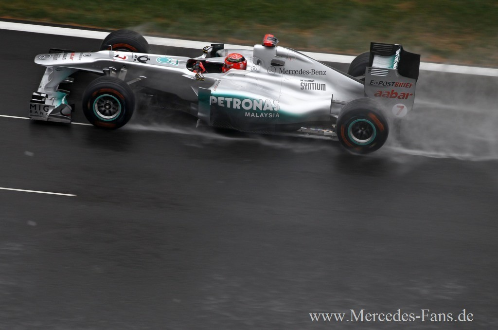 Vom 16. Formel 1 Lauf in Südkorea hat man sich im Mercedes GP Petronas F1 Team nach den guten Qualifying-Leistungen von Altmeister Schumacher wohl mehr erhofft. Doch diese Hoffnungen zerplatzten in der 16. Runde, als Petrow den Rekordweltmeister von der Piste rammte und Schumis Silberfeil zum unfreiwilligen Ausstiegskandidaten machte. Am Ende gewann Sebastian Vettel das Rennen und holte mit seinem Sieg für Red Bull auch die Konstrukteurs-Weltmeisterschaft. Doch auch für Mercedes gab's ein doppeltes Erfolgserlebnis. Erstens fuhr Nico Rosberg mit Rang acht in die Punkte. Und zweitens markiert der zweite Platz von Lewis Hamilton den 100. Podestplatz für Mercedes-V8-Motor in 105 Rennen.