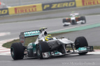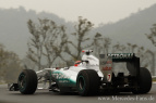 Vom 16. Formel 1 Lauf in Südkorea hat man sich im Mercedes GP Petronas F1 Team nach den guten Qualifying-Leistungen von Altmeister Schumacher wohl mehr erhofft. Doch diese Hoffnungen zerplatzten in der 16. Runde, als Petrow den Rekordweltmeister von der Piste rammte und Schumis Silberfeil zum unfreiwilligen Ausstiegskandidaten machte. Am Ende gewann Sebastian Vettel das Rennen und holte mit seinem Sieg für Red Bull auch die Konstrukteurs-Weltmeisterschaft. Doch auch für Mercedes gab's ein doppeltes Erfolgserlebnis. Erstens fuhr Nico Rosberg mit Rang acht in die Punkte. Und zweitens markiert der zweite Platz von Lewis Hamilton den 100. Podestplatz für Mercedes-V8-Motor in 105 Rennen.