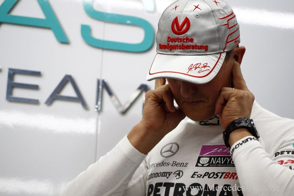 Vom 16. Formel 1 Lauf in Südkorea hat man sich im Mercedes GP Petronas F1 Team nach den guten Qualifying-Leistungen von Altmeister Schumacher wohl mehr erhofft. Doch diese Hoffnungen zerplatzten in der 16. Runde, als Petrow den Rekordweltmeister von der Piste rammte und Schumis Silberfeil zum unfreiwilligen Ausstiegskandidaten machte. Am Ende gewann Sebastian Vettel das Rennen und holte mit seinem Sieg für Red Bull auch die Konstrukteurs-Weltmeisterschaft. Doch auch für Mercedes gab's ein doppeltes Erfolgserlebnis. Erstens fuhr Nico Rosberg mit Rang acht in die Punkte. Und zweitens markiert der zweite Platz von Lewis Hamilton den 100. Podestplatz für Mercedes-V8-Motor in 105 Rennen.