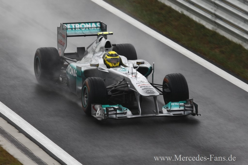 Vom 16. Formel 1 Lauf in Südkorea hat man sich im Mercedes GP Petronas F1 Team nach den guten Qualifying-Leistungen von Altmeister Schumacher wohl mehr erhofft. Doch diese Hoffnungen zerplatzten in der 16. Runde, als Petrow den Rekordweltmeister von der Piste rammte und Schumis Silberfeil zum unfreiwilligen Ausstiegskandidaten machte. Am Ende gewann Sebastian Vettel das Rennen und holte mit seinem Sieg für Red Bull auch die Konstrukteurs-Weltmeisterschaft. Doch auch für Mercedes gab's ein doppeltes Erfolgserlebnis. Erstens fuhr Nico Rosberg mit Rang acht in die Punkte. Und zweitens markiert der zweite Platz von Lewis Hamilton den 100. Podestplatz für Mercedes-V8-Motor in 105 Rennen.