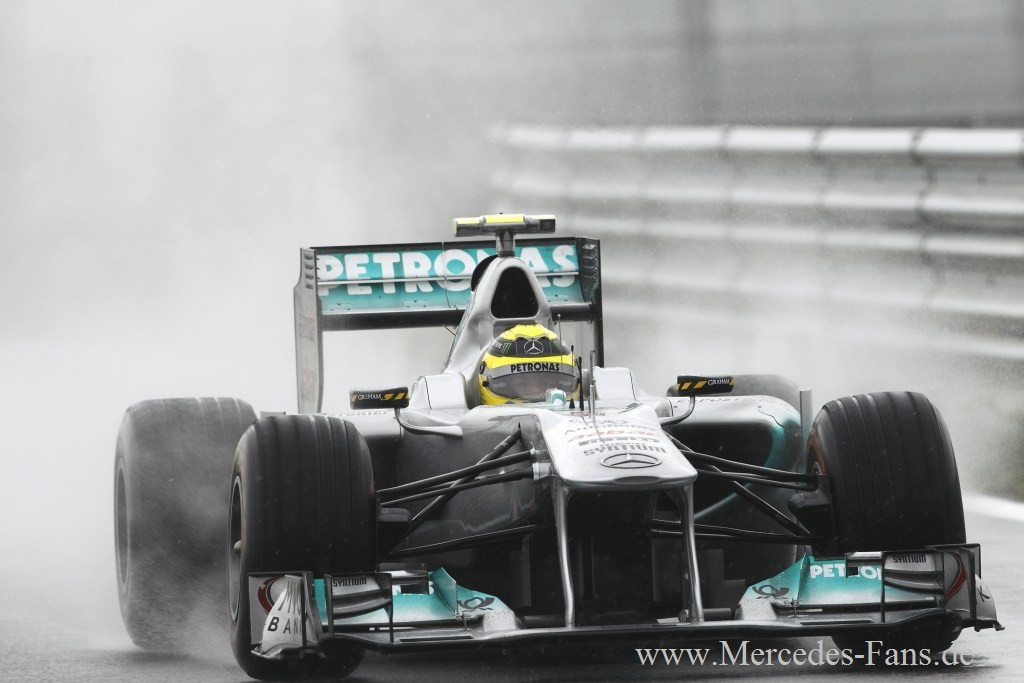 Vom 16. Formel 1 Lauf in Südkorea hat man sich im Mercedes GP Petronas F1 Team nach den guten Qualifying-Leistungen von Altmeister Schumacher wohl mehr erhofft. Doch diese Hoffnungen zerplatzten in der 16. Runde, als Petrow den Rekordweltmeister von der Piste rammte und Schumis Silberfeil zum unfreiwilligen Ausstiegskandidaten machte. Am Ende gewann Sebastian Vettel das Rennen und holte mit seinem Sieg für Red Bull auch die Konstrukteurs-Weltmeisterschaft. Doch auch für Mercedes gab's ein doppeltes Erfolgserlebnis. Erstens fuhr Nico Rosberg mit Rang acht in die Punkte. Und zweitens markiert der zweite Platz von Lewis Hamilton den 100. Podestplatz für Mercedes-V8-Motor in 105 Rennen.