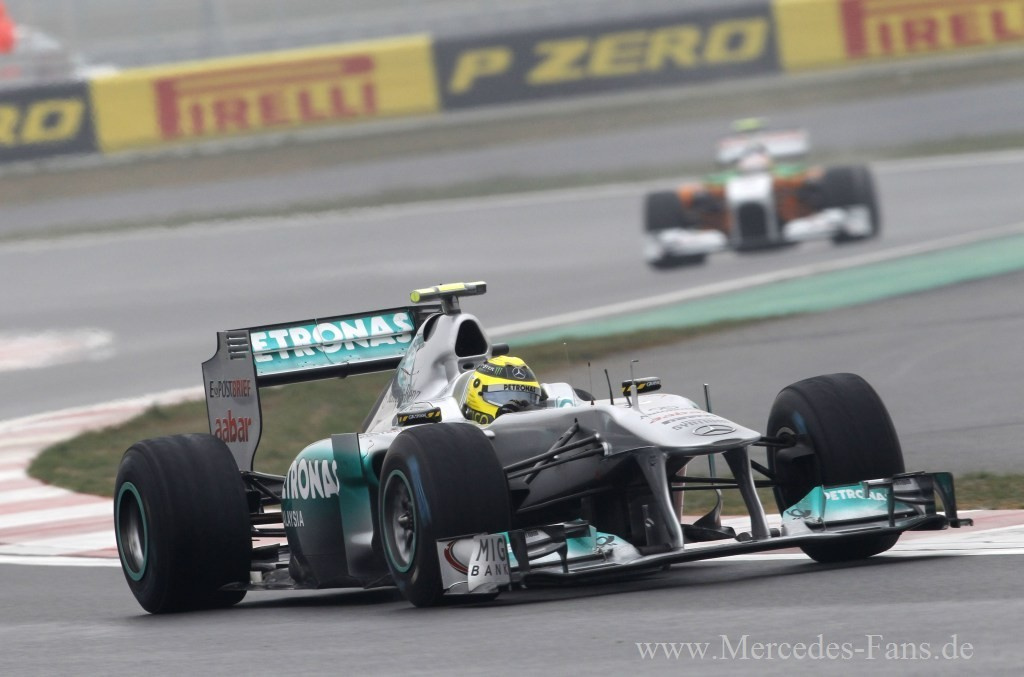 Vom 16. Formel 1 Lauf in Südkorea hat man sich im Mercedes GP Petronas F1 Team nach den guten Qualifying-Leistungen von Altmeister Schumacher wohl mehr erhofft. Doch diese Hoffnungen zerplatzten in der 16. Runde, als Petrow den Rekordweltmeister von der Piste rammte und Schumis Silberfeil zum unfreiwilligen Ausstiegskandidaten machte. Am Ende gewann Sebastian Vettel das Rennen und holte mit seinem Sieg für Red Bull auch die Konstrukteurs-Weltmeisterschaft. Doch auch für Mercedes gab's ein doppeltes Erfolgserlebnis. Erstens fuhr Nico Rosberg mit Rang acht in die Punkte. Und zweitens markiert der zweite Platz von Lewis Hamilton den 100. Podestplatz für Mercedes-V8-Motor in 105 Rennen.