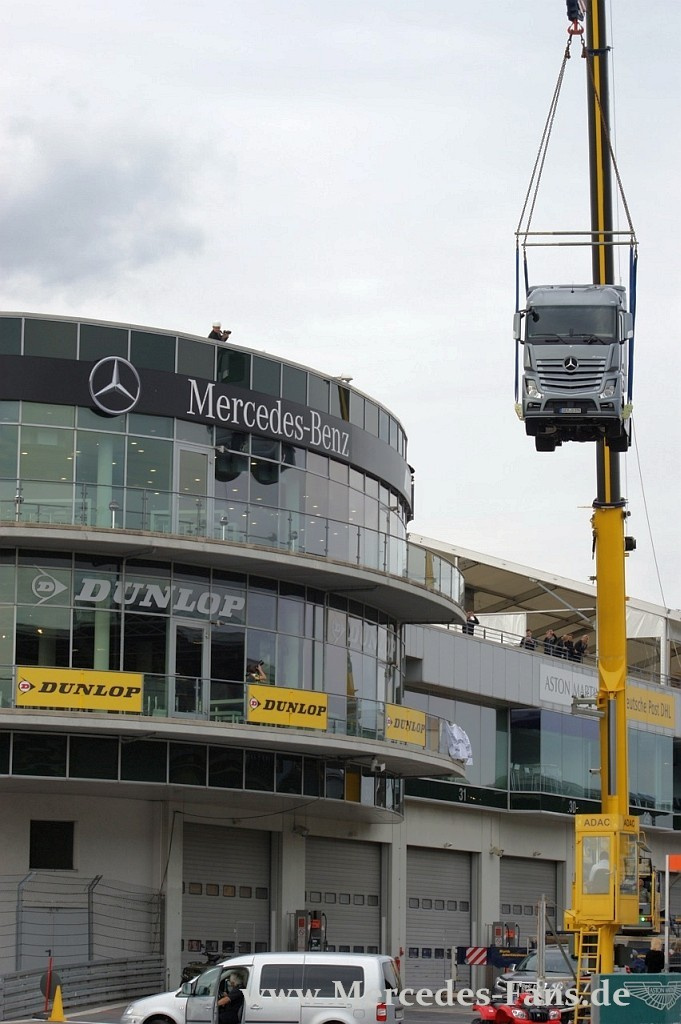 Anlässlich des Truck Grand Prix hat die Daimler AG den neuen Actros auf das Dach der Mercedes Lounge gehieft! /Fotos: Nico Fischer