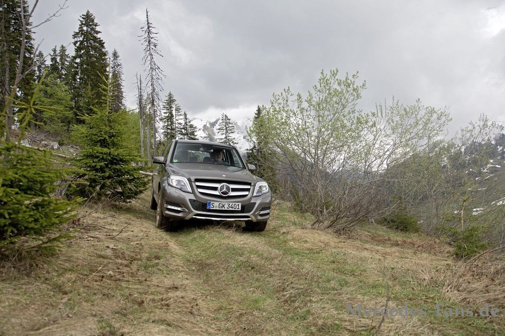 Zwar ist der GLK der kompakteste SUV der Mercedes-Benz Offroad-Familie, aber hinsichtlich des Verkaufserfolgs ist der kantige GLK in jeder Beziehung ein großer Wurf. Das Design kommt an, das Platzangebot ist sehr gut und die robuste Technik haben den Kunden bislang überzeugt. Mit der neuen Modellpflege galt es nun, das Perfekte noch ein bisschen besser und den GLK dank zahlreicher Assistenzsysteme noch ein bisschen sicherer zu machen. Die Qualitäten als moderner SUV sind unbestritten, aber kann man sich mit dem eleganten GLK auch ins Gelände wagen?