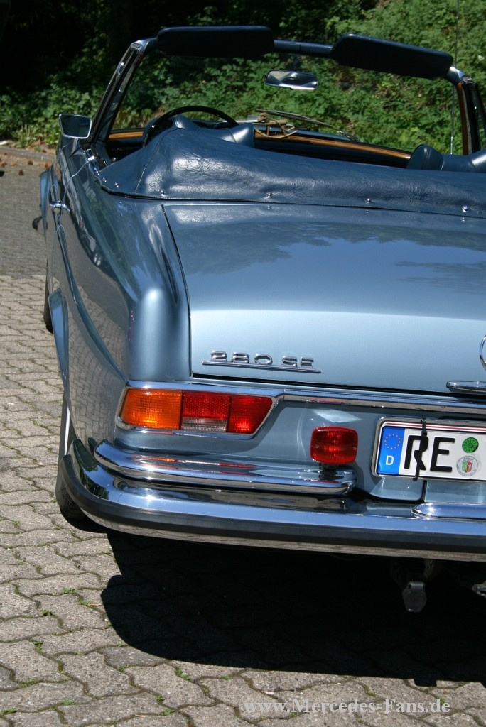 Die Marke Mercedes-Benz hat in ihrer Geschichte viele schöne Fahrzeuge mit Stern auf die Straßen gebracht. Während die meisten davon einfach nur als Alltagsgegenstand genutzt worden sind, sind einige Exemplare schon gleich als Klassiker der Zukunft gehegt und gepflegt worden – die Liebe zum Stern macht es möglich, wie bei dem hier gezeigten W111er Cabriolet von Hans-Werner Ulepic. Das 1970 Mercedes-Benz 280 SE Cabrio ist nämlich schon seit 1991 in dem Besitz des Dorsteners, der durch seinen Schwiegervater zu den Schönen Sternen kam. Dieser hatte nämlich schon immer Heckflossen-Mercedes gefahren. Auch für das heutige MVC-Clubmitglied kam somit nur ein Mercedes-Benz in Frage, und so erstand Hans-Werner einen Mercedes Ponton. Sein Traum aber war ein Cabriolet mit Stern – damals fuhren Hans-Werner und seine Frau – mit der mittlerweile 39 Jahre verheiratet ist – einen Austin Healey. Doch da kündigte sich Nachwuchs im Hause Ulepic an und der kleine Brite hatte nur zwei Sitze. Aufgrund der guten Erfahrungen mit Mercedes-Benz Oldtimern machten sich Hans-Werner und seine Frau auf die Suche nach einem passenden Cabriolet, das Platz für 2+1 bot und fanden schließlich in der „Rheinischen Post“ ein W111 Cabriolet aus zweiter Hand. Zwar war dieses schon einmal neu lackiert worden, aber wohl im originalen, blauen Farbton, was Hans-Werner damals nicht zusagte. Rund ein Jahr suchte der Familienvater nach einem geeigneten Modell, doch er fand nur Schrott. Das damals besichtigte Cabriolet stand immer noch zum Verkauf. Nun ließ sich der Verkäufer mit sich handeln und Hans-Werner hatte ein Cabriolet in seiner Garage stehen! Der W111 wurde als 280 SE Cabriolet – also mit einem 160 PS starken 2,8-Liter Reihensechszylinder und – als Sonderausstattung - manuellem Fünfgang-Schaltgetriebe gebaut. Auch bei seiner Tochter drehte sich alles um Mercedes! Als echter Mercedes-Fan hat Hans-Werner seiner Tochter Sarah den Zweitnamen Mercedes gegeben. Mittlerweile hat Hans-Werner's Tochter Sarah Mercedes den Führerschein und ist ebenfalls von dem Stern fasziniert und darf das blau-grau-metallic farbene Cabriolet auch selbst fahren. Schließlich stehen in der Garage der Mercedes-Fans noch ein paar andere Schöne Sterne – darunter immer noch das Ponton Coupe und ein 300 SL Cabriolet (W198), den wir zu einem späteren Zeitpunkt auf Mercedes-Fans vorstellen. Text & Fotos: Thomas Frankenstein Mercedes-Fans Facts [b]1970 Mercedes-Benz 280 SE Cabrio (W111)[/b] [b]Antrieb:[/b] OHC-R6, 2778 ccm, 160 PS bei 5500 /min, Saugrohreinspritzung, mechanisch geregelt; Bosch 6-Stempel-Einspritzpumpe, 5-Gang-Schaltgetriebe, Hinterradantrieb, [b]Fahrwerk:[/b] Vorne Einzelradaufhängung mit Doppel-Querlenker, Schraubenfedern, Gummi-Zusatzfedern, Drehstab-Stabilisator, Scheibenbremsen; hinten Eingelenk-Pendelachse mit hydropneumatischer Ausgleichfeder und Niveauregulierung, Schraubenfedern, Gummi-Zusatzfedern, Scheibenbremsen [b]Räder:[/b] 6 J x 14 HB Leichtmetallfelgen mit 7,35 oder 185 H 14 (6 PR) Bridgestone [b]Sonstiges: [/b] Sonderausstattung 5-Gang, Farbe: im originalen Farbton lackiert