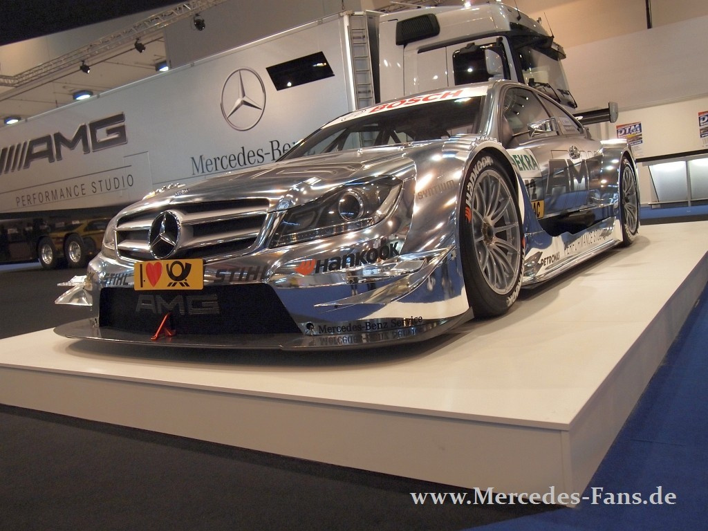Nachdem im letzten Jahr auf der ESSEN MOTOR SHOW das Thema Motorsport wieder stark vertreten war, wurden den Besuchern auch dieses Mal dazu zahlreiche Highlights geboten. So kann man in Halle 3 die neuen Rennboliden der kommenden DTM Saison 2012 bestaunen, darunter auch das DTM AMG Mercedes C-Coupé, das komplett auf Chrom getrimmt schon rein optisch ein Publikumsmagnet ist. Erstmals wurde das Fahrzeug im Rahmen der Internationalen Automobil-Ausstellung IAA in Frankfurt gezeigt. Der neue DTM-Renner, der auf dem Mercedes-Benz C-Klasse Coupé basiert, ist nach einem neuen, verbesserten Sicherheitskonzept entworfen worden. Dazu zählen ein optimiertes Monocoque aus Kohlefaser sowie ein Überrollkäfig aus hochfestem Stahl.