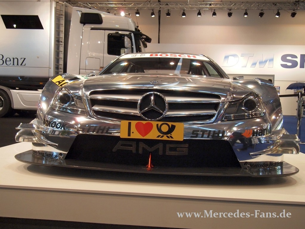 Nachdem im letzten Jahr auf der ESSEN MOTOR SHOW das Thema Motorsport wieder stark vertreten war, wurden den Besuchern auch dieses Mal dazu zahlreiche Highlights geboten. So kann man in Halle 3 die neuen Rennboliden der kommenden DTM Saison 2012 bestaunen, darunter auch das DTM AMG Mercedes C-Coupé, das komplett auf Chrom getrimmt schon rein optisch ein Publikumsmagnet ist. Erstmals wurde das Fahrzeug im Rahmen der Internationalen Automobil-Ausstellung IAA in Frankfurt gezeigt. Der neue DTM-Renner, der auf dem Mercedes-Benz C-Klasse Coupé basiert, ist nach einem neuen, verbesserten Sicherheitskonzept entworfen worden. Dazu zählen ein optimiertes Monocoque aus Kohlefaser sowie ein Überrollkäfig aus hochfestem Stahl.