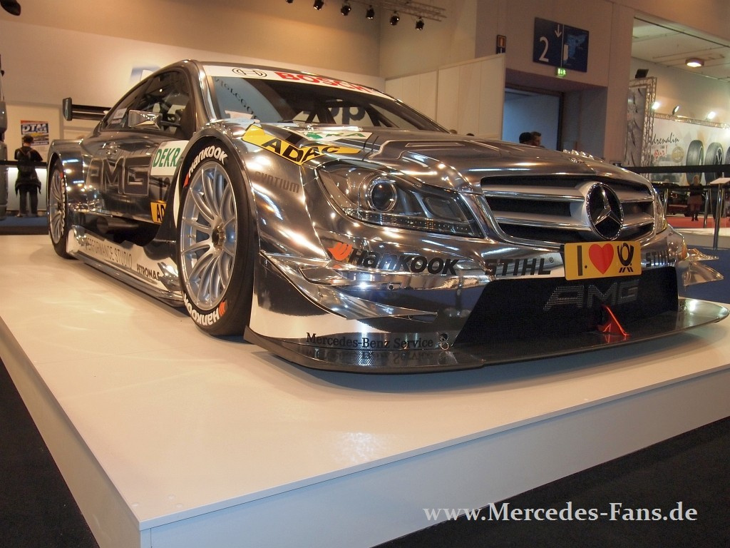 Nachdem im letzten Jahr auf der ESSEN MOTOR SHOW das Thema Motorsport wieder stark vertreten war, wurden den Besuchern auch dieses Mal dazu zahlreiche Highlights geboten. So kann man in Halle 3 die neuen Rennboliden der kommenden DTM Saison 2012 bestaunen, darunter auch das DTM AMG Mercedes C-Coupé, das komplett auf Chrom getrimmt schon rein optisch ein Publikumsmagnet ist. Erstmals wurde das Fahrzeug im Rahmen der Internationalen Automobil-Ausstellung IAA in Frankfurt gezeigt. Der neue DTM-Renner, der auf dem Mercedes-Benz C-Klasse Coupé basiert, ist nach einem neuen, verbesserten Sicherheitskonzept entworfen worden. Dazu zählen ein optimiertes Monocoque aus Kohlefaser sowie ein Überrollkäfig aus hochfestem Stahl.